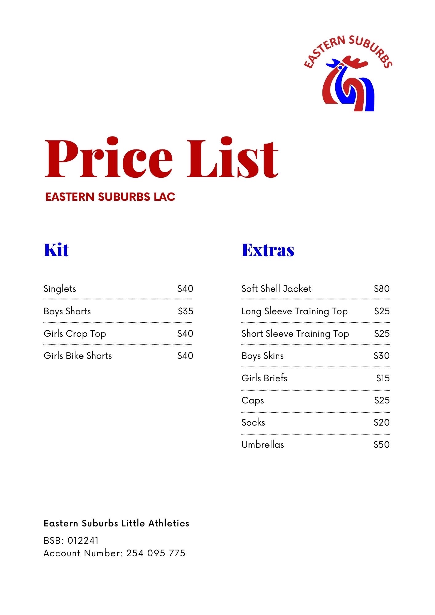 Accordingly, athletes must compete in the Eastern Suburbs Little Athletics Centre uniform each Friday, wearing their specific Athlete’s Number on their top front. (Parents please don’t get sibling numbers mixed, it confuses the computer!) The Age Group Number must be sewn above the number patch on the singlet/crop top.