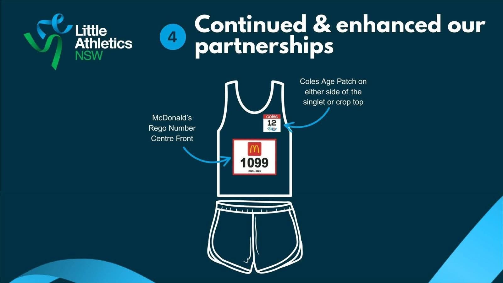 Accordingly, athletes must compete in the Eastern Suburbs Little Athletics Centre uniform each Friday, wearing their specific Athlete’s Number on their top front. (Parents please don’t get sibling numbers mixed, it confuses the computer!) The Age Group Number must be sewn above the number patch on the singlet/crop top.